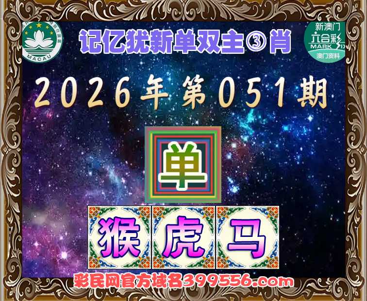 051期:【记忆犹新】 👩🌾单双主③肖👩🌾【单-猴虎马】开:马01准