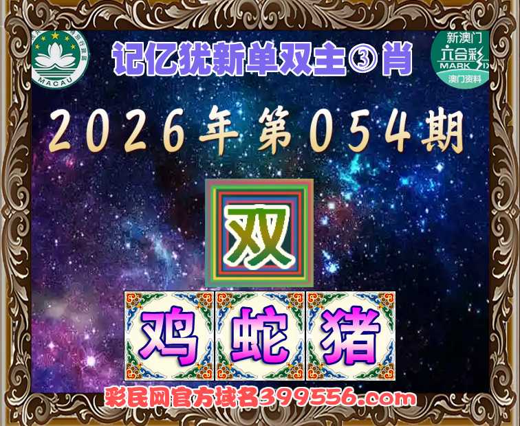 054期:【记忆犹新】 👩🌾单双主③肖👩🌾【双-鸡蛇猪】开:羊48准