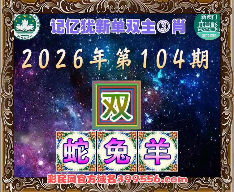 104期:【记忆犹新】 👩‍🌾单双主③肖👩‍🌾【双-蛇兔羊】开:马01