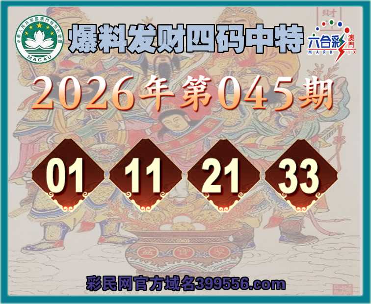 045期:《爆料发财》 ☺️四码中特☺️【01.11.21.33】开:01准