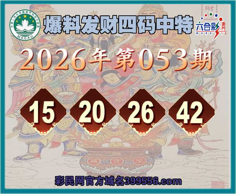 053期:《爆料发财》 ☺️四码中特☺️【15.20.26.42】开:15准