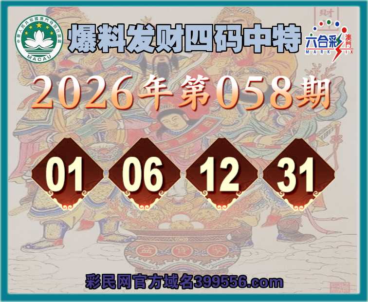 058期:《爆料发财》 ☺️四码中特☺️【01.06.12.31】开:31准