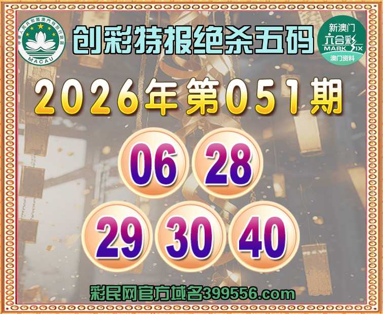 051期:【创彩特报】 🧶绝杀五码🧶【06.28.29.30.40】开:马01准
