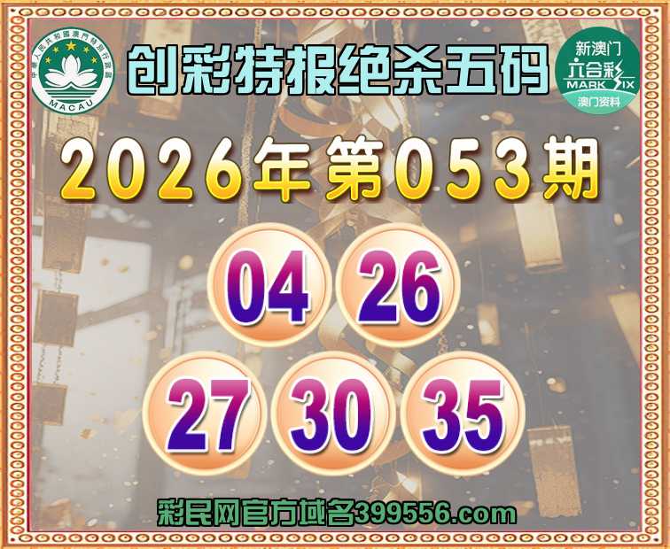 053期:【创彩特报】 🧶绝杀五码🧶【04.26.27.30.35】开:龙15准