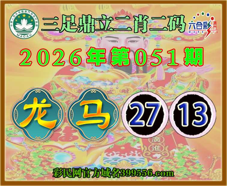 051期:〖三足鼎立〗 💎二肖二码💎【龙马】【27.13】开:马01准