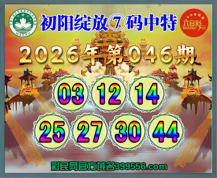 046期: 🍖『初阳绽放』 🍖⑦码中特🍖【03.12.14.25.27.30.44】开:03