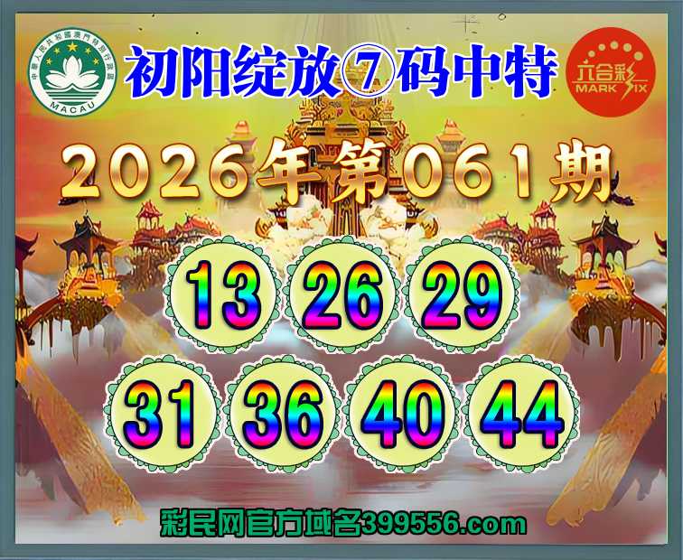 061期: 🍖『初阳绽放』 🍖⑦码中特🍖【13.26.29.31.36.40.44】开:29