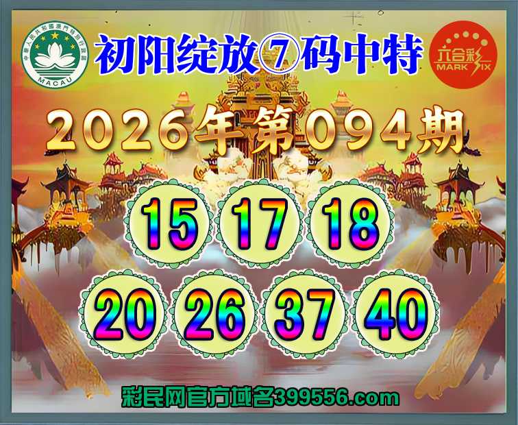 094期: 🍖『初阳绽放』 🍖⑦码中特🍖【15.17.18.20.26.37.40】开:17