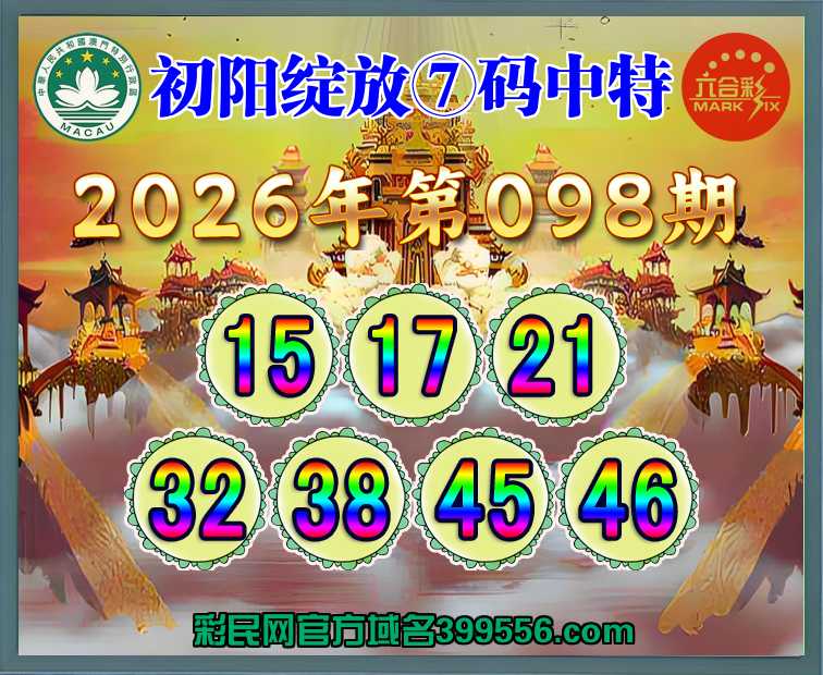 098期: 🍖『初阳绽放』 🍖⑦码中特🍖【15.17.21.32.38.45.46】开:17