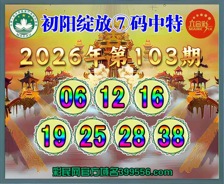 103期: 🍖『初阳绽放』 🍖⑦码中特🍖【06.12.16.19.25.28.38】开:06