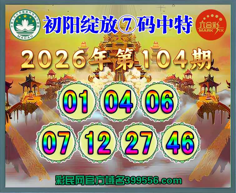104期: 🍖『初阳绽放』 🍖⑦码中特🍖【01.04.06.07.12.27.46】开:01